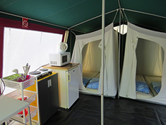 Kitchen: All tents have a fully equipped kitchen with large fridge-freezer, microwave, el. cooker, electric kettle, electric fan and air heater, all dishes for cooking and dining, food lockers, wardrobe, kitchen tool organizers, table, chairs, el. connection, lighting, garden umbrellas and clothes dryer.